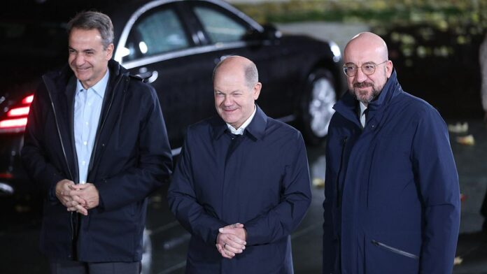 Aufbauend auf dem Austausch beim informellen Europäischen Rat in Granada wolle ER-Präsident Michel einen „informellen Austausch in kleineren Gruppen zur Strategischen Agenda“ ermöglichen, hieß es im Vorfeld. Auf der Teilnehmerliste standen der griechische Ministerpräsident Kyriakos Mitsotakis, der österreichische Bundeskanzler Karl Nehammer, der belgische Premierminister Alexander de Croo, der Präsident der Republik Zypern Nikos Christodoulides, der Ministerpräsident Ungarns Viktor Orbán sowie der Staatspräsident der Republik Litauen Gitanas Naus?da. Die Bundesregierung hatte zuvor die Erwartungen an das Treffen gedämpft. Scholz werde mit dem EU-Ratspräsidenten sowie den anwesenden Staats- und Regierungschefs „vertraulich sprechen“, sagte Regierungssprecher Steffen Hebestreit.