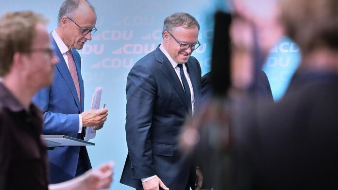 Foto: Friedrich Merz und Mario Voigt (Archiv), via dts Nachrichtenagentur